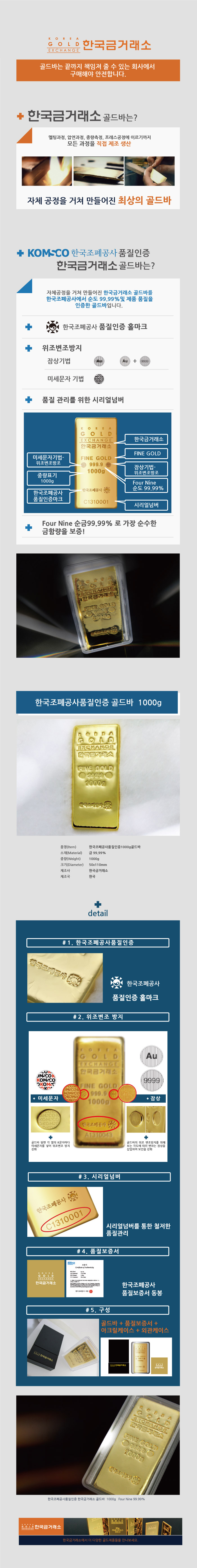 한국조폐공사 품질인증 골드바 1000g(구매시재고문의)