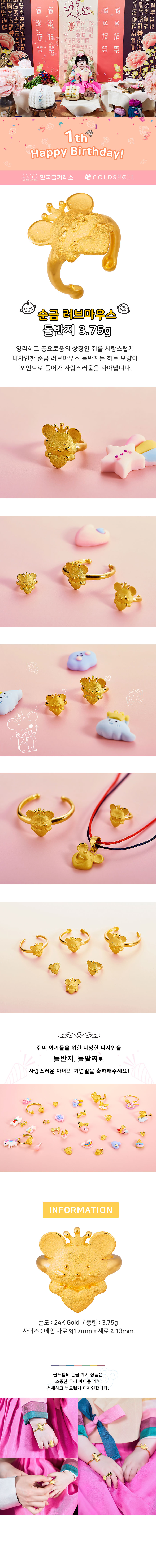 순금 러브마우스 돌반지 3.75g